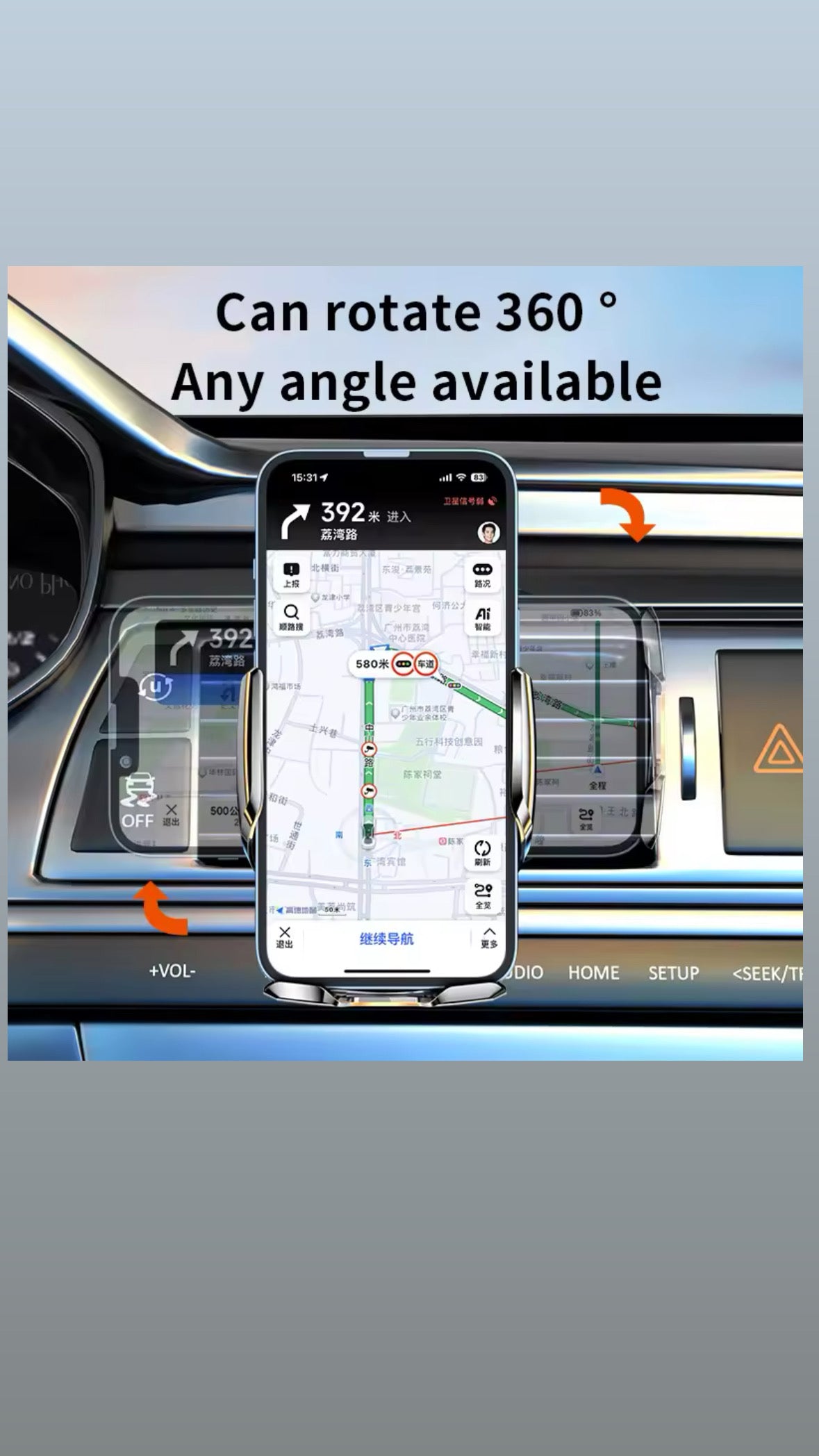 Support de téléphone de voiture sans fil 15W à charge rapide, avec détection infrarouge automatique — compatible avec tous les smartphones.