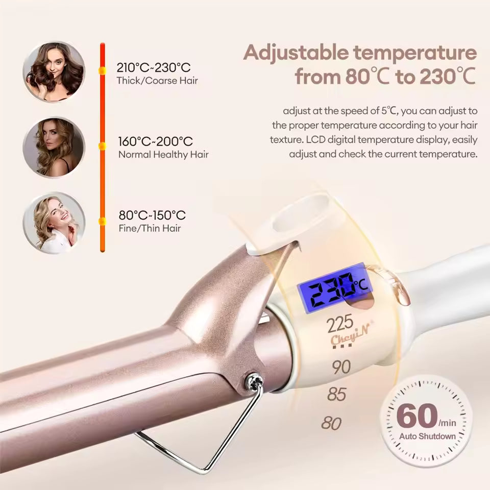CkeyiN Fer à frire numérique LCD 25mm 32mm 38mm Fer à frire électrique pour femmes Professionnel Céramique Outils de coiffure
