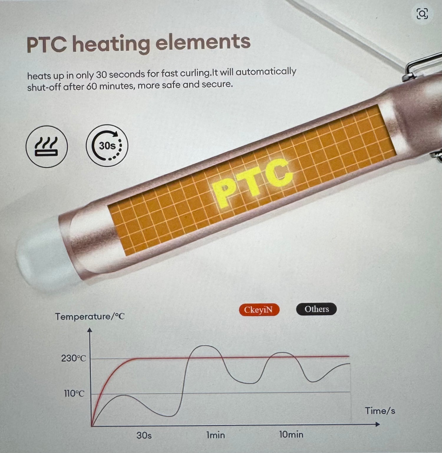 Éléments chauffants PTC, chauffent en seulement 30 secondes pour un curling rapide. Il s'éteint automatiquement après 60 minutes, plus sûr et sécurisé.